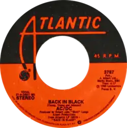 "Back in Black" is a song by Australian rock band AC/DC. It was released as the second US single from their seventh album, which is also named Back in Black and released in 1980 through Atlantic Records. Notable for its opening guitar riff, the song was written as a tribute to the band's former singer Bon Scott, who died suddenly in February 1980. In 1981, it reached number 37 on the Billboard Hot 100. In 2012, it reached number 65 in Australia and number 27 in the United Kingdom. It has been widely regarded one of the best rock songs of all time.
