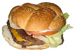 The Bacon Deluxe is a bacon-topped hamburger offered at international fast food chain Wendy's. It is Wendy's entry into the premium sandwich category, "something other hamburger chains have used to compete with fast-casual restaurants."[1] Burger King offers the Steakhouse XT Burger and McDonald's has had an Angus Third Pounder.[1] The Bacon Deluxe was launched with an extensive media campaign and priced at $3.99 for a single, $4.99 for a double and $5.99 for a triple, and is being launched alongside another Wendy's bacon sandwich: the Baconator.[1]