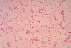 Bacteroides ovatus is an anaerobic, Gram-negative, non-spore-forming rod-shaped bacterium.[2] It is a typical component of the human microbiome, commonly found in the colon. It typically forms a beneficial relationship with the host when retained in the gut. Escape from this environment can cause significant pathology in many body sites.[3] It is a member of the Bacteroides fragilis group, a group of the most commonly isolated Bacteroidacaea in anaerobic infections. The group is named after Bacteroides fragilis, the most prevalent organism in the group.[4][5]