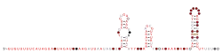 Two B. thetaiotaomicron sRNAs that have been functionally characterized are RteR and GibS. RteR is a 78 nucleotide (nt) long sRNA that is conserved in closely related species and likely serves as a repressor of a transposon operon.[3][4] Analyses based on secondary structure conservation, taking into consideration nucleotide covariation and in-vitro chemical probing have revealed a structure that consists of a 5’ hairpin and a Rho-independent terminator that are separated by an 8 nt sequence.[3][1] GibS is a 145 nt long sRNA that is also conserved in several closely related species within phylum Bacteroidota and has been hypothesized to play a role in carbon metabolism.[1] Structural analyses have revealed this sRNA to possess an extended 5’ single stranded region (38 nt) followed by two meta-stable hairpins and a Rho-independent terminator at the 3’ end. It is maximally expressed when B. thetaiotaomicron is grown in N-acetyl-D-glucosamine as the sole carbon source and has been shown to both induce and repress target mRNAs involved in metabolic regulation.[1]