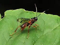 In addition to these, Hawaii has developed methods to suppress Bactrocera species using parasitoid wasps, including Fopius arisanus. The parasitic wasp oviposits its own eggs into B. dorsalis eggs, the parasitoids are reared in the host, and the developed parasitoids emerge in the pupal stage. F. arisanus has been observed to be the most successful example of parasitoid control of B. dorsalis, and researchers are looking to introduce its model of suppression from Hawaii to other areas of the world that the fly affects.[23]