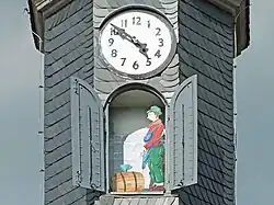 - "Lommesteener Fäßlesächer" is a small figure located in the town hall tower who seems to urinate through a funnel into a barrel. He is the mascot of Bad Lobenstein. He is hidden behind two doors and is visible several times a day. This figure reflects the nickname of the Lobensteiner, who as economical craft weaver in the 19th century collected the ammonia to produce the finish of the cloth from human urine. Several times a day the figure splashes directly on the marketplace.