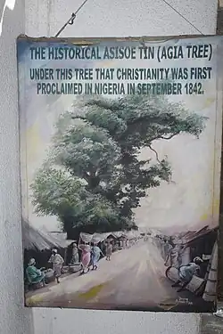 The place where Christmas was first celebrated in Nigeria by Reverend Freeman and Reverend Townsend on 25 December 1842.[45]