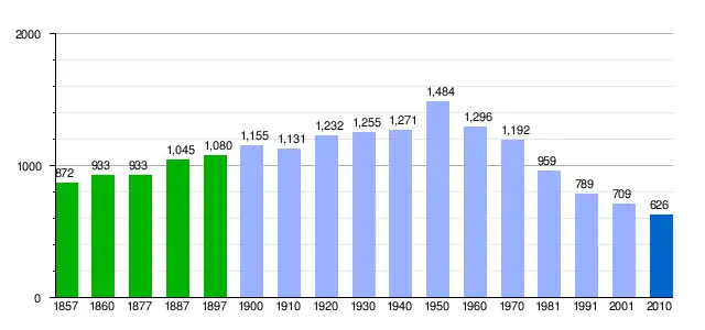 In 2010 the population increased to 626 inhabitants, 330 men and 296 women.[3]