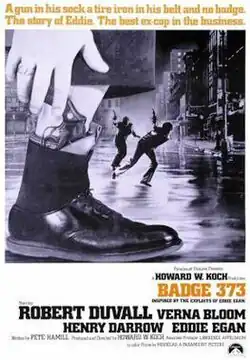 Badge 373 is a 1973 American neo noir crime thriller film inspired, as was The French Connection, by the life and career of police officer Eddie Egan, here called "Eddie Ryan". The film, which has a screenplay by journalist Pete Hamill, was produced and directed by Howard W. Koch, and stars Robert Duvall as Ryan, with Verna Bloom, Henry Darrow and Eddie Egan himself as a police lieutenant.