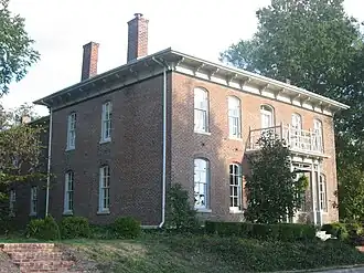 The Badollet House is one of three properties listed on the National Register of Historic Places in the Marion County, Illinois county seat of Salem. The house was built for businessman Howard Badollet and his wife. The house was designed in the Italianate style and is the only surviving Italianate home in Salem. The two-story brick house consists of a front section completed in 1854 and a rear wing finished the following year. The decorative elements of the house were most likely added in the 1860s or 1870s. The house's hip roof features overhanging eaves and a bracketed cornice. The original front porch was replaced by a simpler two-story porch around 1900.[2]