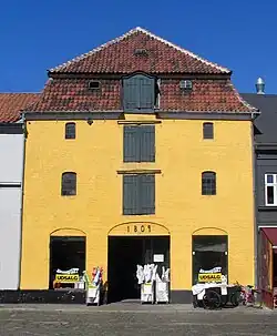 The house was built by the merchant Harboe Meulengracht in 1809 as a warehouse to store imported products and it is one of the only remaining warehouses facing a street.[2][3] In 1816, he built an adjacent villa facing Lille Torv and the two buildings forms a courtyard. The warehouse was listed in 1970 and carefully renovated in 1977 and the courtyard-facade was restored to its original appearance.[4]