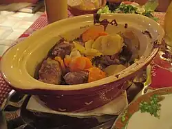 Baeckeoffe (English: "baker’s oven")[2] is a casserole dish[3][4] that is typical in the French region of Alsace, situated on the border with Germany.