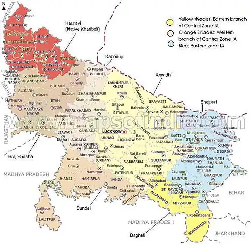 ![]() Baghelkhand region where Bagheli is spoken | |