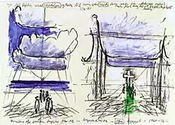 In 1538, the church in Bagsværd was pulled down on the orders of the king so that the stones could be used to repair the old Catholic bishop's palace which, after the Reformation, was to be used as a seminary for the new Lutheran Church. Thereafter, the parishioners had to use the church in Gladsaxe though there was increasing interest in building a new church in Bagsværd.[3] It therefore came as no surprise that the congregational council took special interest in the church Utzon had included in a competition exhibit for the town centre in Farum when it was displayed in Gladsaxe at an architectural exhibition in 1967. When he was asked whether he would like to submit a proposal for a church at Bagsværd, Utzon was elated: "There I stood, and was offered the finest task an architect can have — a magnificent time when it was the light from above that showed us the way."[4] The proposal he submitted the following year included four sketches: the first one showed a group of people under the clouds on a beach, the last one depicted the same people as a congregation in a church where the clouds had become the sculptural roof. They were intended to illustrate Utzon's understanding of the overall concept.