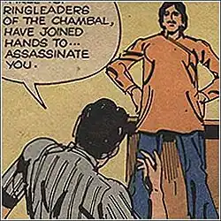 Aabid Surti conceived of Bahadur and started the comic strip in 1976.[2] "Bennett, Coleman & Co wanted me to create an Indian character that could take on the popularity of the four foreign comics that ruled the market in India then—The Phantom, Mandrake, Flash Gordon and Tarzan," he says. "During that time, the Chambal Valley was becoming increasingly notorious, and there were exhortations to people to group together to fight crime. So I developed the character of Bahadur as someone who helps create a citizens' police force to fight the dacoits."[5]