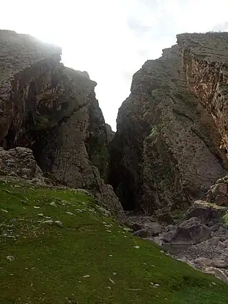 Bahram-e Choobin Gorge is a historical and tourist site in the mountains of Kabir Kuh near Sheykh Makan village in Darreh Shahr County in Ilam province. The gorge is named after Bahram Chobin, a political leader of late Sasanian Empire and as its leader for about a year (r. 590–591). Based on historical accounts, Bahram Chobin took refuge in the gorge during the rebellion against Khosrow II.[1][2][3]
