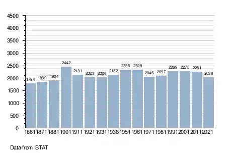 - ^ "Superficie di Comuni Province e Regioni italiane al 9 ottobre 2011". Italian National Institute of Statistics. Retrieved 16 March 2019.