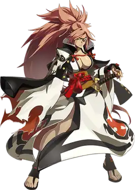 As introduced in the 1998 fighting game Guilty Gear, Baiken is an optional boss that is unlocked as a playable character upon defeat.[20] Among the few people born of Japanese descent in the series, when the country was attacked by Gears she was heavily injured. Losing her family and friends, as well as an eye and arm, she declared revenge on the person responsible for the Gears' attack.[17] However in Guilty Gear Strive, her view on the world has softened thanks to the help of others. She meets Delilah, a young girl also seeking revenge against the same person. Taking her in, Baiken acts as a big sister to her and convinces Delilah not to ruin her life seeking revenge.[21][22] Through the course of the series Baiken has been voiced in Japanese by various voice actresses including Satomi Koorogi,[3] Miho Sudou,[4] Yonemoto Chizu,[5] and Mayumi Asano.[6] In English for Strive, she is voiced by Patty Mattson.[2]
