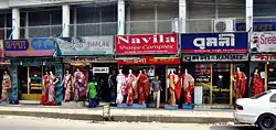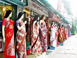 Bailey Road is a prominent place for shopping. Traditional and local sarees and dresses are sold there. Major boutiques on Bailey Road include the handloom sari shops, like Tangali Sari Kutir and Jamdani Sari Kutir. Sarees such as jamdani, katan, muslin, cotton, and tangali are vastly sold each day. Bailey Road is that there are several shopping malls such as Bailey Star. Also, it has numerous brand stores like Celebration, Pride, Fit Elegance, Lubnan, Richman, Rex, Ecstasy, Moods, Shada Kalo, and many more. In 2006, Khaleda Zia, the Prime Minister of Bangladesh, made gift of silk Jamdani saris from the former to Gursharan Kaur, wife of Indian Prime Minister Manmohan Singh, and Sonia Gandhi, chief of ruling Indian National Congress.[8]