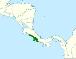 Baird's trogon is found on the Pacific slope of Costa Rica from approximately the Tárcoles River south just into western Panama's Chiriquí Province. It primarily inhabits the interior canopy of humid rainforest but also occurs at its edges, in tall secondary forest, and in shady semi-open woodland. In elevation it ranges from sea level to 1,200 m (3,900 ft).[4]