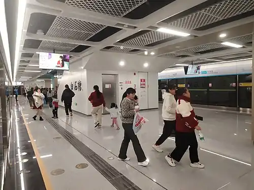 Baishitang station (Chinese: 白石塘; pinyin: Báishítáng Zhàn; Jyutping: Baak6 Sek6 Tong4 Zaam6) is a station on Line 3 of Shenzhen Metro. It opened on 28 December 2024,[1] and is located underground in Pingdi Subdistrict in Longgang District.[2]