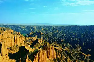 Baiyin (simplified Chinese: 白银; traditional Chinese: 白銀; pinyin: Báiyín; lit. 'White-Silver') is a prefecture-level city in northeastern Gansu province, People's Republic of China. Established in the 1950s as a base for mining non-ferrous metals, its mines are becoming exhausted in recent decades, requiring the city to reinvent its economy.[3][4] Located around 60 km (37 mi) from Gansu's capital Lanzhou, it is part of the Lanzhou-Baiyin Economic Belt.[5]