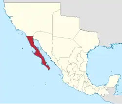 ![]() Location of the Baja California Territory (red) in Mexico, 1824. | |