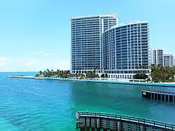 Baker's Haulover Inlet, more commonly known simply as Haulover inlet, is a man-made channel in Miami-Dade County, Florida, connecting the northern end of Biscayne Bay with the Atlantic Ocean. The inlet was cut in 1925 through a narrow point in the sand between the cities of Bal Harbour and Sunny Isles. It is the location of an official nude beach, recreation areas and marina in the 99-acre (40-hectare) Haulover Park. A fixed bridge carries State Road A1A across the inlet.