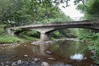 Baker Bridge, also known as Huntingdon County Bridge No. 14, is a historic reinforced concrete closed spandrel arch bridge spanning the Great Trough Creek and located at Todd Township, Huntingdon County, Pennsylvania. It is on Township Route 377 (Newburg Park Road). It was built in 1917, and measures 114-foot-long (35 m) and has a 17-foot-wide (5.2 m) bridge deck. It has two arch spans.[2]