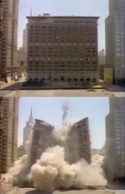 The new owners decided the 600-700 room hotel could not be economically converted for their needs. A sale of interior goods from chandeliers to doorknobs took place in September 1979. The Baker Hotel, along with two adjacent office buildings and a smokestack were imploded on June 29, 1980, and in seconds the once grand hotel was in complete ruin. The site was cleared and in its place a modern skyscraper known as One Bell Plaza was planned to be built.