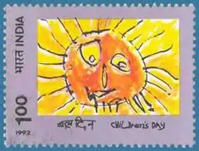 ![]() Indian stamp on Children's Day, based on a child's drawing | |