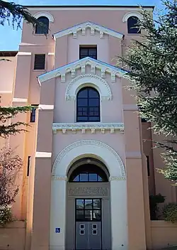 Balboa is one of two of the only historic landmark schools operating in San Francisco (the second being Mission High School designated with landmark number 250.) The campus became city historic landmark number 205 by proclamation signed on January 20, 1995, by mayor Frank Jordan.[29] Balboa is regarded as one of the better designed and visually engaging schools within the SFUSD.[30] San Francisco architect John Reid Jr. designed the first campus buildings in the Spanish Colonial Revival Style with a prominent center courtyard, mission style roof tiles, and arcades.