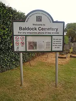 - ^ Baldock Cemetery on the North Hertfordshire District Council website