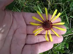 Balduina atropurpurea is a perennial herb with branching stems. Each plant has 1-4 flower heads, each with yellow ray florets and purple disc florets. The species grows in pinelands and savannahs.[6]