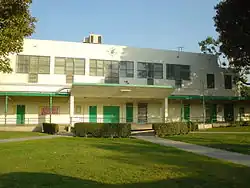 The 1932 Los Angeles Olympics housed athletes at the Olympic Village in Baldwin Hills.[4] It was the site of the very first Olympic Village ever built, for the 1932 Los Angeles Summer Olympic Games.[5] Built for male athletes only, the village consisted of several hundred buildings, including post and telegraph offices, an amphitheater, a hospital, a fire department, and a bank. Female athletes were housed at the Chapman Park Hotel on Wilshire Boulevard. The Olympic Village was demolished after the Summer Olympic Games.[6]