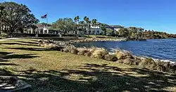 Similar to the New Urban design elements of Celebration, "The Vision Plan" for Baldwin Park, included a pedestrian friendly Village Center with high density residential units, while also balancing and preserving aspects of nature in its design.[13] The city held an open-bid of prestigious developers to develop the project. In 1998, the City of Orlando chose the development company Orlando NTC Partners (aka Baldwin Park Development Co.) to develop "The Vision Plan". On October 27, 1999, the city council unanimously voted in support of the purchase of the officially ceased NTC. The Navy, moments later, agreed to sell the property to Orlando NTC Partners.[14] By 2003, the first structures in the community were built. The entire master-planned community was completed by 2008.[15] The community was named after Robert H. B. Baldwin, who served as the undersecretary of the United States Navy in the 1960s.[16]