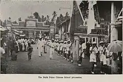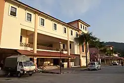 The centre of Balik Pulau, also known colloquially as 'Kongsi' (meaning 'to share' in Malay), was apparently named after the communal wooden longhouses that once existed within the area.[8] Residents of various ethnicities, who worked at the plantations surrounding Balik Pulau, resided in these longhouses, hence the name. Balik Pulau developed towards the late 19th century with the addition of banks, schools, shops and a colonial fountain, which was erected in the late 19th century by a local Chinese businessman, Koh Seang Tat.[9]