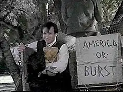 When the series begins, Balki arrives in America to live with his distant cousin Larry Appleton, carrying his meager possessions in a trunk labeled "America or Burst". A scene depicting this trunk is shown during the opening credits throughout the run of the show, although it was somewhat shortened from season 3 on. In the first scene of the pilot, he appears on his Cousin Larry's doorstep in Chicago, explaining that he first went to Madison, Wisconsin to find Larry, only to find that Larry had just moved to Chicago. The pilot to Perfect Strangers was originally filmed with comedian Louie Anderson as the Cousin Larry character; however the role was recast with Mark Linn-Baker playing the part, and the original pilot never aired.[3]