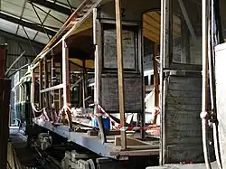 - Number 21: built in 1913 in Ballarat for Electric Supply Company of Victoria. The style was known as the "Sebastopol" tram. Sold in 1935 for use in a house near Daylesford, and returned to Ballarat in 1994.[15] This tram is in poor condition and suitable only for parts. It is currently in storage offsite.