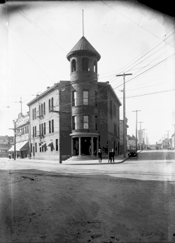 The railroad to Seattle ended at Salmon Bay because the railroad company was unwilling to build a trestle to cross the bay. From the stop at "Ballard Junction," (as the terminus was called) passengers could walk across the wagon bridge and continue the journey to Seattle. In addition to gaining notoriety as the end of the railway line, the fledgling town of Ballard benefited economically from the railway because the railroad provided a way to bring supplies into the area and also to export locally manufactured products. Ability to ship products spurred the growth of mills of many types. Ballard's first mill, built in 1888 by Mr. J Sinclair was a lumber mill; the second mill, finished the same year was a shingle mill.[14] After the Great Seattle Fire in 1889 the mills provided opportunities for those who had lost jobs in the fire, which in turn spurred the growth of the settlement as families moved north to work in the mills. Ballard experienced an influx of Scandinavian immigrants during this period, and Scandinavian culture and traditions would be influential on Ballard as it developed.[15]
