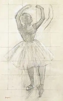 Ballerina Posing for a Photographer is an oil on canvas painting executed in 1875 by the French artist Edgar Degas. It depicts a young ballet dancer posing in front of a standing mirror; in the background, through a large window, is seen an elevated view of the walls of the houses opposite and the snow-covered rooftops of Paris. It is held in the Pushkin Museum, in Moscow.[1][2]