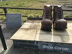 On 29 November 2019, a sculpture was unveiled by the Minister for Rural and Community Development, Michael Ring, which serves as a reminder of Ballinrobe's history. The shoe sculpture was carved by Tommy Kerrigan, a local artist, who carved the pair of boots using solid oak.[25]