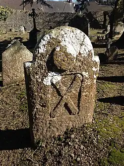 Temple Hill, Churchyard Lane, and Ballintemple itself derive their names from an ecclesiastical and burial site at the top of Temple Hill.[2][3] While some historical texts suggest that this graveyard was sited at an early medieval church of the Knights Templar,[4] this is not supported by other texts,[5] and modern historians assert that this association is incorrect.[6] The name may denote land belonging to the church as opposed to the site of a church building.[7] Whatever the case, while the graveyard remains, no archaeological evidence of an adjoining church has been subject to modern survey.[2] The graveyard itself has been surveyed,[8] and while it may have been used in the early mediaeval period, the earliest recorded burial event was that of the entrails of Henry FitzRoy, 1st Duke of Grafton who was killed in the 1690 Siege of Cork and whose intestines were removed and buried here to preserve the body prior to transport back to England.[9] The earliest remaining extant burial markers (with discernable dates) are dated to the early 18th century.[10] The antiquary and folklorist Thomas Crofton Croker surveyed the graveyard in the early 19th century. He recorded a folksong relating to the graveyard[11] as well as documenting a marker for an 18th-century burial of a Lieutenant Henry Richard Temple who died with his young wife during a journey from the Caribbean (via Ireland) to England.[12] During one such survey in the early 1800s, Croker was chased by locals who mistook his survey for grave robbery.[13] The graveyard is accessible but closed to new burials (save to a few families with existing burial rights).