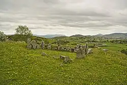 The Ballymacdermot Court Tomb is a megalithic portal tomb 600 feet up the southern slope of Ballymacdermot Mountain in County Armagh, two miles outside Newry.[2] Ballymacdermott is situated with views of the Mourne Mountains to the east and Slieve Gullion to the west.[3] The site is a scheduled monument in State care.