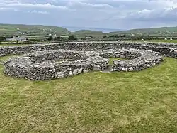 This cashel (stone fort, 27 metres (89 ft) internal diameter[4]) was in use in the 7th–10th centuries, with later reuse in the 13th century.[5] It is similar to the cashel at Leacanabuaile.[6]