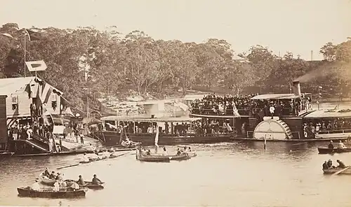 Balmain Rowing Club was formed on 7 June 1882 at a meeting held at Dicks Hotel in Balmain. The meeting consisted of local citizens and the mayor and councillors of the then Balmain Municipal Council. That same year the site of Pritchard's Boatshed at the bottom of White Street was purchased and plans made to build the rowing shed at a cost of £368. The club is on the same site today.[1]
