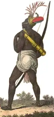While there is little consensus among modern historians and ethnologists as to the origins or meaning of the ethno-linguistic term, references to the name Bambara can be found from the early 18th century.[10] In addition to its general use as a reference to an ethno-linguistic group, Bambara was also used to identify captive Africans who originated in the interior of Africa perhaps from the upper Senegal-Niger region and transported to the Americas via ports on the Senegambian coast. As early as 1730 at the slave-trading post of Gorée, the term Bambara referred simply to slaves who were already in the service of the local elites or French.[11]