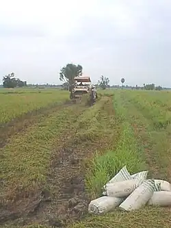 Ban Dongphayom is a rural agricultural residential village. Resident farmers in Ban Dongphayom are primarily engaged in the business of growing rice. However, most farms are diversified, growing sugar cane, bananas, mangos, papayas, chili peppers, coconuts, spices and herbs. Farmers in Ban Dongphayom also typically raise livestock such as cattle, chicken and pigs. A public pharmacy is also run from one of the homes in Ban Dongphayom which supplies medication to Ban Dongphayom villagers and residents of surrounding villages in Nakhon Pa Mak. Villagers also engage in fishing in the canal which flows through the village. As of 2001, running water had just been installed in Ban Dongphayom, and the water quality was not yet suitable for drinking. Electricity is available and most homes have televisions. Phone lines, however are not installed. Some villagers use mobile phones for communication outside the village. Transportation in and out of the village is over narrow dirt roads. These roads are the primary route for transportation in Ban Dongphayom, although the canal is navigable for small boats. Small bridges such as the bridge at Ban Dongphayom prevent larger vessels from navigating the canal.