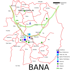 Bana is a sub-prefecture and commune in the West Province of Cameroon, some 8 km east of Bafang and 2 km south-west of Babouantou.