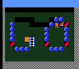 Among the fruits the player must collect are bananas.[1] These are special fruits which give the player one of four items: a bomb, a ladder segment, a rope, or a rock. These may be used to free a stuck player following a misstep. If a player walks under a rock, that rock shakes. When the player moves out from under the rock, the rock and any rocks on top of it fall. The player cannot die from a falling rock, but may become stuck a rock blocks the exit.