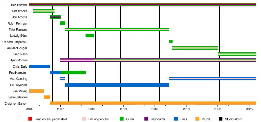 For ten years, the band's most stable line-up featured guitarist Tyler Ramsey and bassist Bill Reynolds, who recorded and performed with the band between 2007 and 2017, before acrimoniously departing.