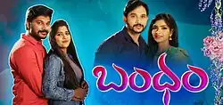 Bandham is an Indian Telugu language soap opera directed by Polani Nagendra kumar premiered on 16 July 2018 and ended on 21 August 2021 aired on Gemini TV every Monday to Saturday. The serial stars Bharadwaj, Sindhura, Anika Rao in season 1 and Niharika, Aishwarya Raj, Abhishek Yannam, Devaraj Reddy in season 2 as main protagonists.[1][2]