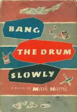 Bang the Drum Slowly is a novel by Mark Harris, first published in 1956 by Knopf. The novel is the second in a series of four novels written by Harris that chronicles the career of baseball player Henry W. Wiggen. Bang the Drum Slowly was a sequel to The Southpaw (1953), with A Ticket for a Seamstitch (1957) and It Looked Like For Ever (1979), completing the tetralogy of baseball novels by Harris.[1]
