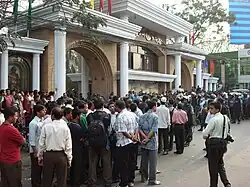 Bangladesh Rifles revolt, also referred to as the Pilkhana massacre or the Pilkhana tragedy, was a mutiny staged on 25 and 26 February 2009 in Dhaka by a section of the Bangladesh Rifles (BDR), a paramilitary force mainly tasked with guarding the borders of Bangladesh. The rebelling BDR soldiers took over the BDR headquarters in Pilkhana, killing BDR director-general Shakil Ahmed along with 56 other army officers and 17 civilians. They also fired on civilians, held many of their officers and their families hostage, vandalised property and looted valuables.[5] By the second day, unrest had spread to 12 other towns and cities.[6][7] The mutiny ended as the mutineers surrendered their arms and released the hostages[8] after a series of staged discussions and negotiations with the government.[9]